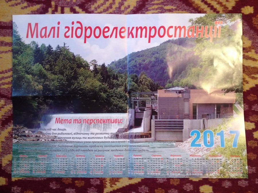 Декілька тижнів тому всі мешканці села Зелене Верховинського району отримали дивний «подарунок» від ТОВ «Гідроенергобуд»- календар на 2017 рік з світлинами малої гідроелектростанції та буклет, де розписано про всі нібито переваги будівництва ГЕС для місцевих громад. Зокрема обіцяється «прийняти на роботу для обслуговування ГЕС 12-16 мешканців села Зелене».