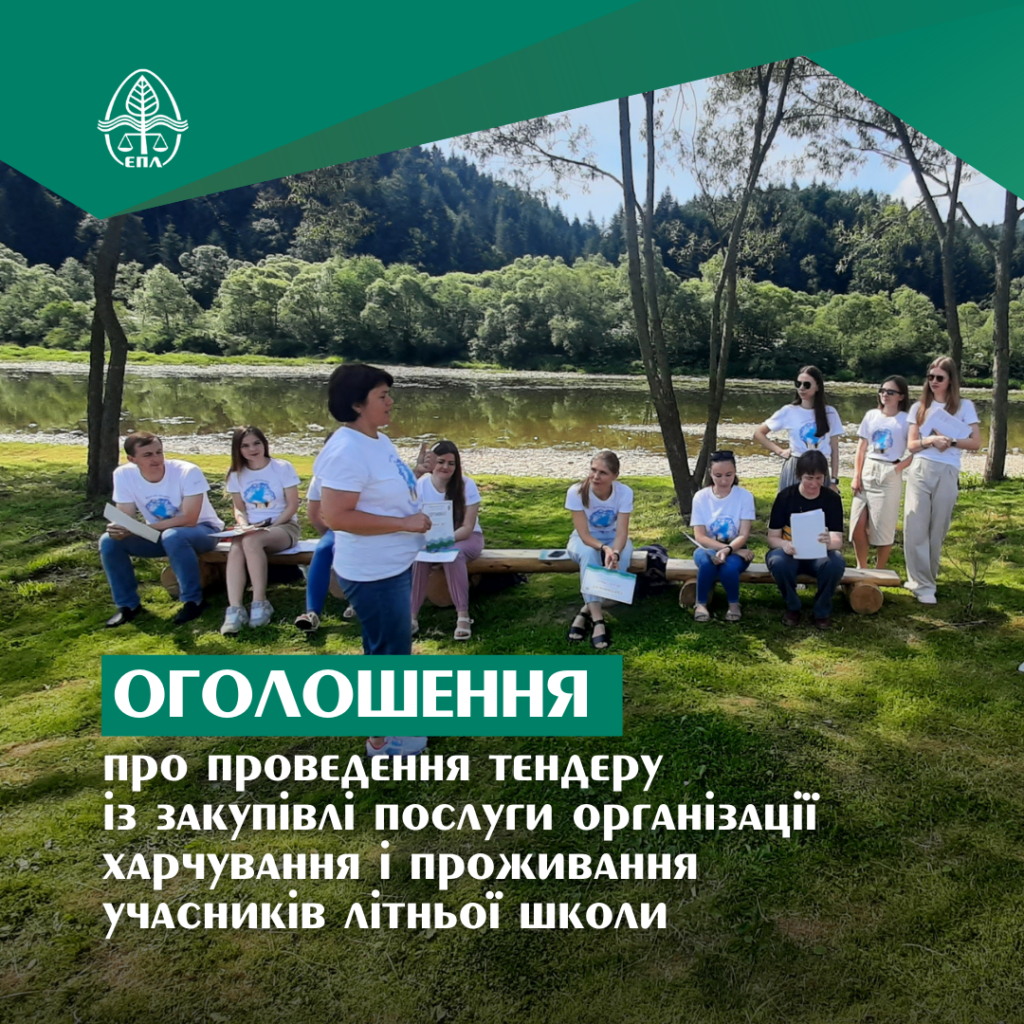 ЕПЛ (надалі – Організація) для підвищення якості і прозорості своєї фінансової діяльності та з метою дотримання антикорупційної політики Організації оголошує тендер на закупівлю послуги організації харчування і проживання учасників літньої школи для активістів-екологів.