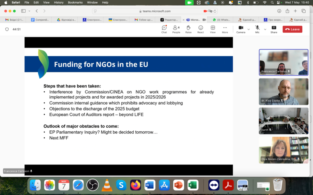 7-8 травня 2025р. О.Мелень-Забрамна взяла участь в засіданні робочої групи по праву Європейського екологічного бюро (ЕЕВ) онлайн.