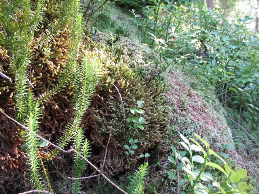 Spruce forest along with blueberries and sphagnum mosses form a unique group listed in the Green Book of Ukraine. In the foreground of the photo, along with mosses you can see a relic plant – ground pine. This species is vulnerable and is located in the Carpathian Mountains on the border area, just confined to waterlogged spruce-bilberry green moss forests listed in the Red Book of Ukraine. Forest logging in this area is prohibited with the special regime of the species preservation and protection.